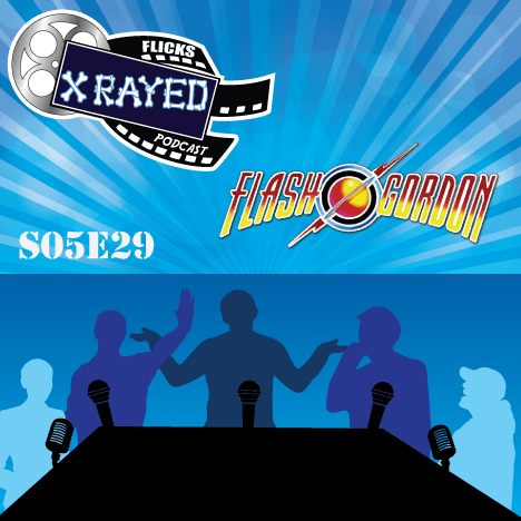 This week we are abducted and whisked into space, for episode twenty nine of season five, of Flicks XRayed because we are watching and reviewing Flash Gordon. Host, Empress of the Hour Tony is joined co-host CDuff The Merciless and guests Rock Opera Aficionado Orin, Ming Henchman out of work Bryan, and Birdperson Elisa. This week we play a game of Release Year for Space Hero Movies, The Price is Right and The Flicks Awesome Lodge Word Game for the coveted pretty princess crown. So tune in as we discuss at length about Useless Heros, Porn Parodies, Queen and sooo much more.